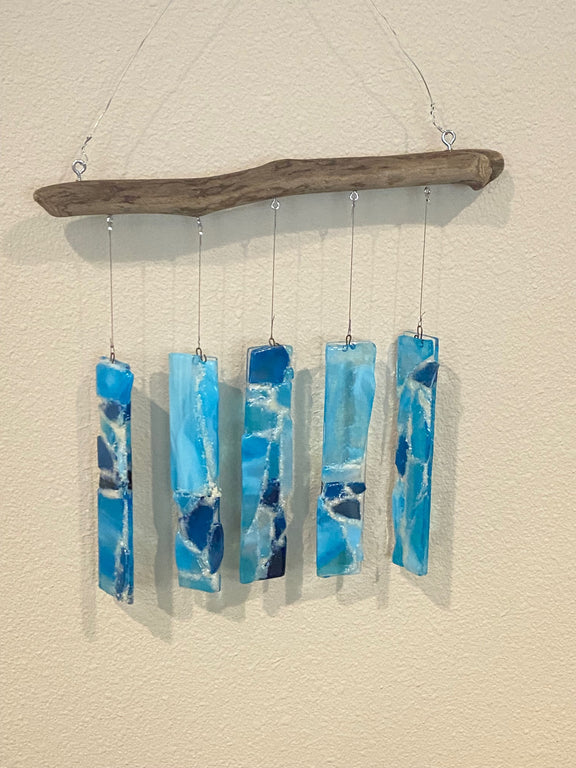 Once fired, your glass pieces will be assembled with wire and hung from a piece of driftwood, creating a unique, one-of-a-kind wind chime perfect for a porch, patio, garden, or indoor space where it can catch the light.